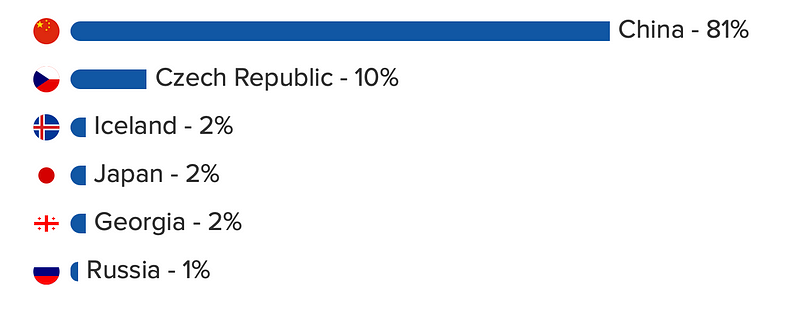 - 2018년 비트코인 채굴 자료에 따르면 중국에서 81%의 채굴량을 기록했다.